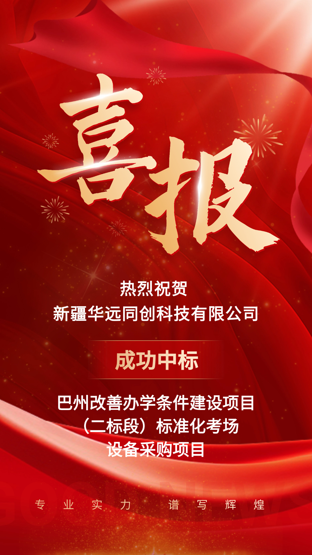 金秋時(shí)節(jié)收獲多,中標(biāo)喜訊乘“豐”來!近日,在全體員工的共同努力下,新疆華遠(yuǎn)同創(chuàng)科技有限公司成功中標(biāo)巴州改善辦學(xué)條件建設(shè)項(xiàng)目(二標(biāo)段)標(biāo)準(zhǔn)化考場(chǎng)設(shè)備采購項(xiàng)目。